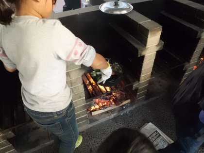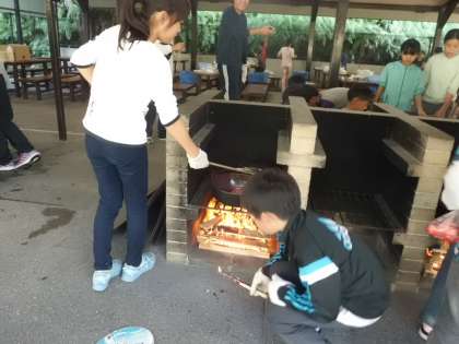 最後の夕食は,野外炊事でご飯を炊き,すき焼き風煮を作ります。