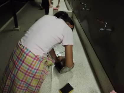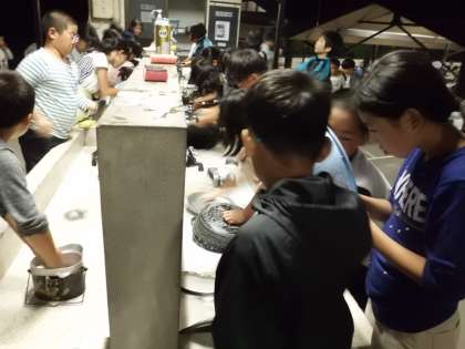 「来たときよりも美しく」を合言葉に,飯盒や鍋をごしごし洗っていました。