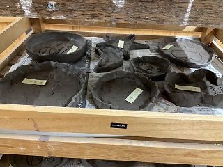 「陶芸教室」がありました。地域の指導者の方に教えていただき、お皿を作りました。粘土を丸くして伸ばし、ふちを作ってイラストを描きました。思いのこもったステキなお皿ができました。これから素焼きをし、色を付けていきます。楽しみです。