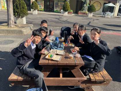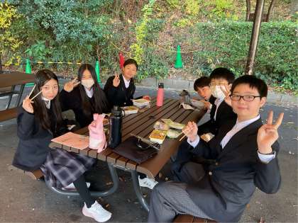 動物を見る前にお昼ご飯。みんな美味しくいただいています。