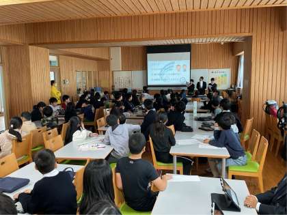 交流の最後には、4年生による防災についての発表がありました。班ごとで円になって話を聞き、4年生が出した防災クイズに7年生が一生懸命答える姿もありました。学びのある楽しい時間となりました。