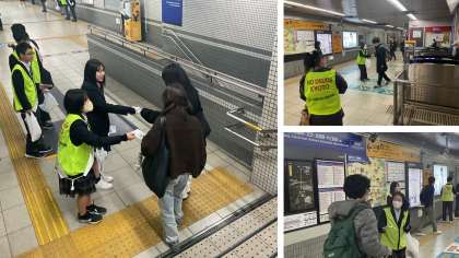 今年度も地域や警察の方々のご協力を受け、薬物乱用防止街頭キャンペーンを実施しました。本校児童生徒会(美化保健委員)を中心に2年前から実施しているキャンペーンです。例年通り、京阪東福寺駅と京阪七条駅の2か所に分かれ、啓発のパンフレットとティッシュを配りました。