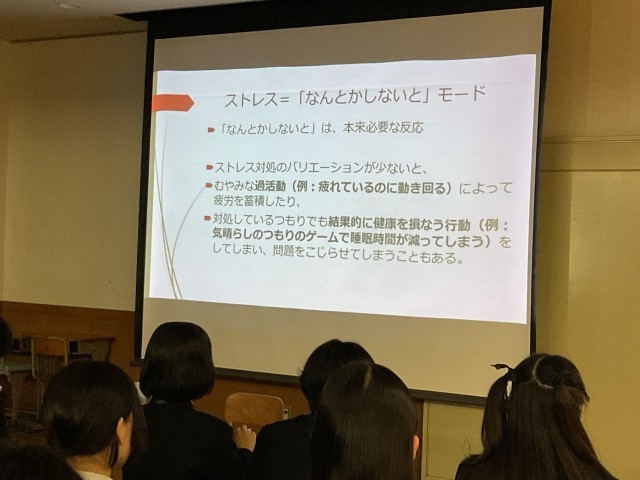 今年は「ストレス対処のバリエーションアップ講座」ということで、これまで3年間のお話をおさらいし、ストレスの多いこの時期の9年生にぴったりのストレスとの向き合い方についてお話しいただきました。