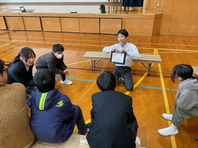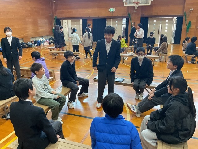 2月4日の午後に5,8年の東学舎交流がありました。この取り組みは、4月から東学舎にやってくる5年生に8年生が学校の説明や校舎案内をすることが目的です。班単位で交流をしました。