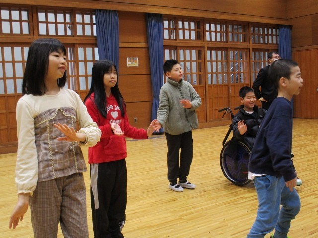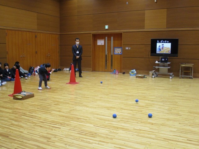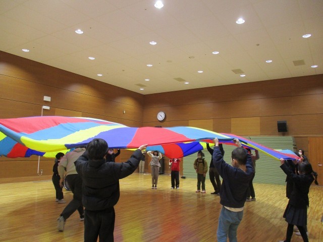 支部おめでとう会で開睛小中学校へ行きました。下京・東山とオンラインでつないで「ツバメ」ダンスを踊りました。みんなノリノリでのびのびと踊ることができました。その後に、バルーンとボッチャをしました。バルーンでは、みんなで協力して大きなバルーンが出来上がって、とてもうれしそうな様子でした。ボッチャでは、声を掛け合いながら楽しむことができました。子どもたちは心に残る思い出になりました。また、集まれる日が楽しみです。