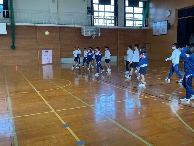 体育委員主催のスポーツ大会が行われました。内容は王様ドッヂボールでした。2,3,4組を混ぜてクラスに関係なく作った3グループで戦いました。試合の前には円陣をつくり、誰を王様にするかを相談します。王様がアウトになったら終了ではなく、制限時間内に王様が残っていればよい!という独自のルールを考え、戦いました。試合前後の声掛けや結果発表など、教師の手を借りることなく、8年生が全ての運営を行ったスポーツ大会。大成功に終わり、みんなで楽しむことができたように思います。見ている先生たちもハラハラドキドキとっても楽しかったです。