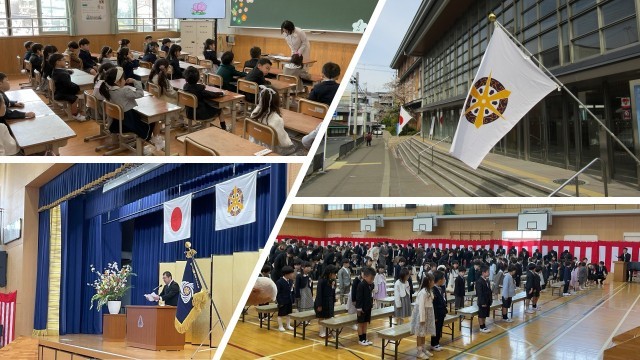 4月9日に令和8年度入学式を実施しました。少し緊張した面持ちで学校に登校した1年生。しかし、児童生徒会本部のお兄さん、お姉さんに引率されながらの入場や校長先生のお話、みんなでの学級写真や教室での先生との出会いを通して、緊張がほぐれたようです。最後はみんなニコニコ笑顔で下校しました。1年生から9年生までみんなのそろった東山泉小中学校のスタートです。