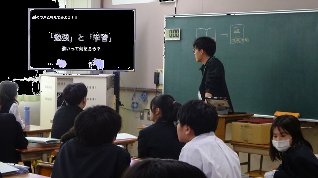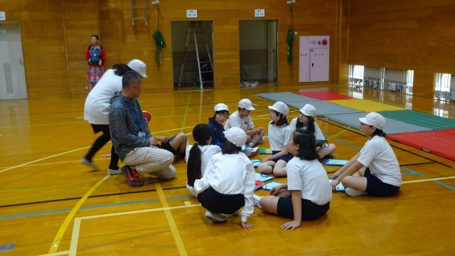授業の第一歩として「勉強と学習のちがいとは?」を考えたり、先生を交えてマット運動がうまくなる方法を考えたり…。