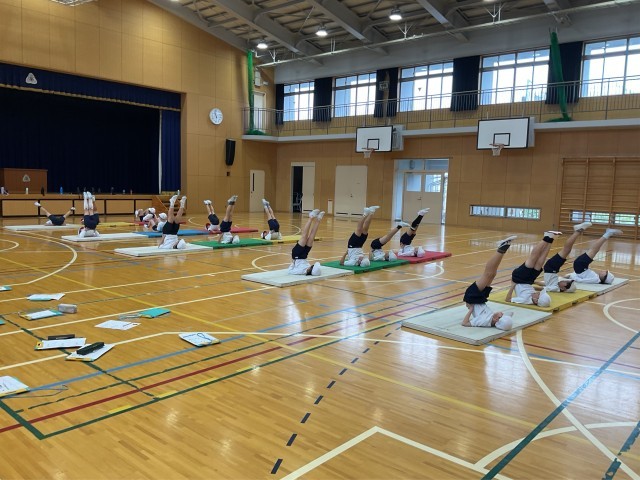4年生は体育で、マット運動の学習を行いました。