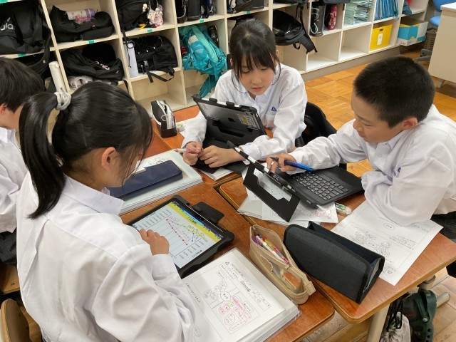 いよいよ6年生夢創の学習が始まりました。6年生はわたしたちの暮らす東山区について考えていきます。今回はたくさんの資料をグループで協力して読み取り、東山区の実態を調査しました。「こんなに空き家が多いの!?」「もしかして子どもの数がこんなに少ないから公園が少ないのかな?」など、資料と自分たちのイメージをつなげて考えることができているグループもありました。