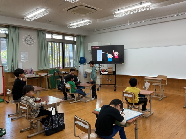 毎朝の朝の会は、1つの教室にみんな集まってしています。一人一人の名前を言うのも慣れてきました。