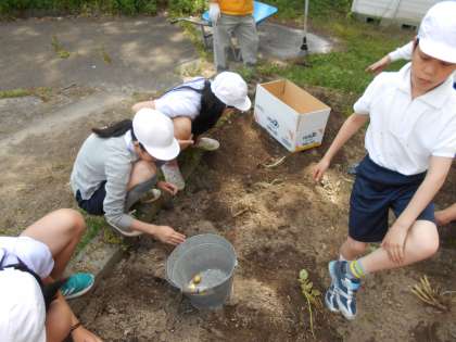 9日(金)の5時間目にじゃがいもの収穫を行いました。昨年度植えたものがしっかりと育ち,大小様々な大きさのじゃがいもに育ちました。今回の収穫や普段のお世話では地域の方々に大変お世話になりました。