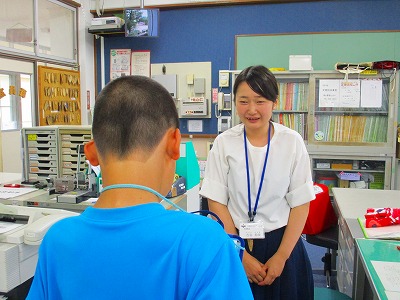 栄養教諭の吉谷先生にお願いをしに行きました。