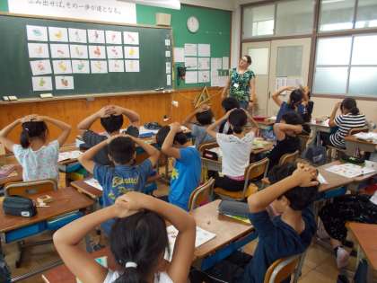 外国語の学習でお世話になっていたパシーアス先生が母国アメリカに帰国されることになりました。パシーアス先生は月に1度程度,外国語の学習を指導しに来られていました。子どもたちにとって,ネイティブの外国語の発音に触れることは大切なことで,来られる日を楽しみにしていました。お別れするのはさびしいことですが,楽しい外国語の学習ができました。外国語でお礼とお別れのあいさつをしました