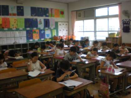 5年生は、ただいま奥越高原で3泊4日の宿泊学習の真っ最中です。校内は・・24日からの3日間のチャレンジ学習にどの学年も多数参加してくれました。教室で宿題をしたり、読書をしたり、作文を書いたり、個々の課題に取り組んでいました。学習の後は低学年は10時からのプール学習にたくさん参加していました。