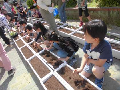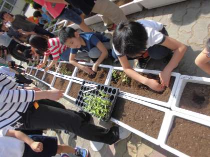 笑顔と花いっぱいプロジェクトで花の苗植えをしました。トマトを植えるときも苗を植えます。子どもたちも楽しみにしていました。