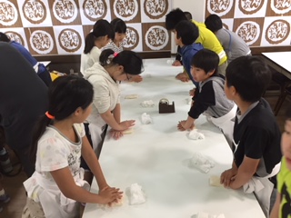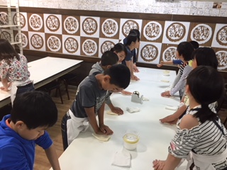 琴平中野うどん学校での,うどん作り体験。