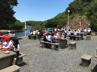 天気がいいので,昼食は外で。