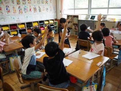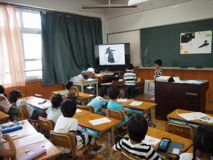 国語科の学習「くちばし」で,生き物クイズを作りました。今日は,いろいろな生き物の,しっぽや耳,くちばしなどの絵とその部分の特徴を書いた生き物クイズカードを見せながら,クイズ大会をしました。いろいろな生き物がクイズに出て,大盛り上がりでした。