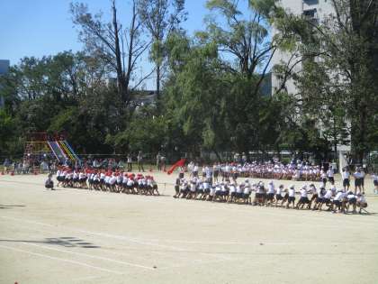 最高の天気で迎えられた運動会。80m走やでかパンリレー・綱引き・山階グランプリレース・低学年リレー。そして今まで必死で頑張ってきた団体演技「破っ!!」。今までの踊りの中で一番元気に,そして上手に踊れていました。終わった後,子どもたちに感想を聞いてみると,「あっという間だった」「もう少し踊りたかった」など名残惜しむ声も聞こえてきました。時間が早く感じるのは,いい思い出ができた証拠だよと伝えました。この思い出を胸に,さらなる成長に期待ですね!