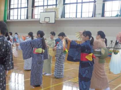 後半はお扇子の使い方や踊り方を教えてもらい,最後は曲に合わせて踊ることができました。