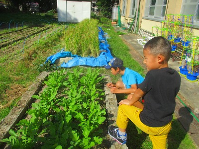 運動会前に植えた青首大根もすくすくと育ち,葉っぱも大きくなり