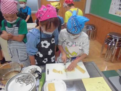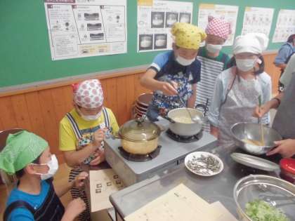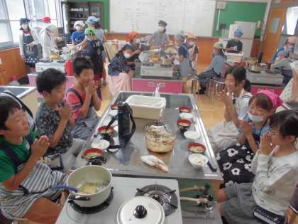 家庭科では「食べて元気!ごはんとみそ汁」の学習をしています。