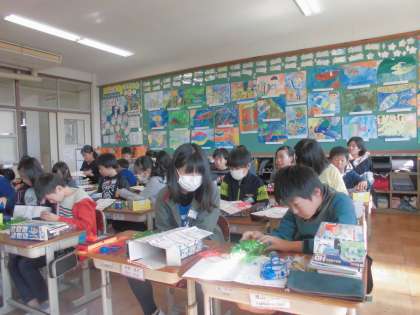 何やら楽しそうなキットが届き,子ども達はわくわくしながら先生の説明を聞いていました。