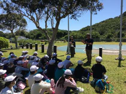 入所式をして,所員の方に挨拶をします。