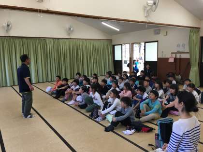 施設での過ごし方や寝具の使い方などを教えてもらいます。