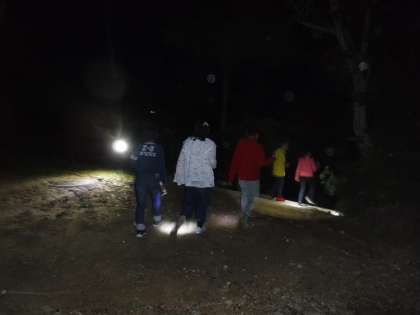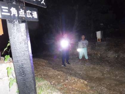 星空のもと,懐中電灯のあかりを頼りに散策します。