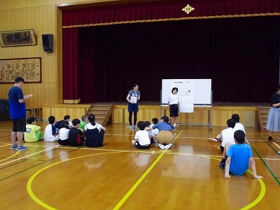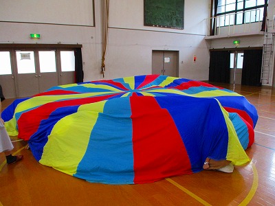 7月11日に今年度第1回目の小中合同学習がありました。安祥寺中学校ブロックの育成学級のお友だちが山階小学校に集まりました。当日は残念ながら雨でプール学習はできませんでしたが,体育館でリレーやしっぽ取り,パラバルーンを楽しみました。久々に同じブロックのお友だちと顔を合わせ,みんなとても嬉しそうでした。