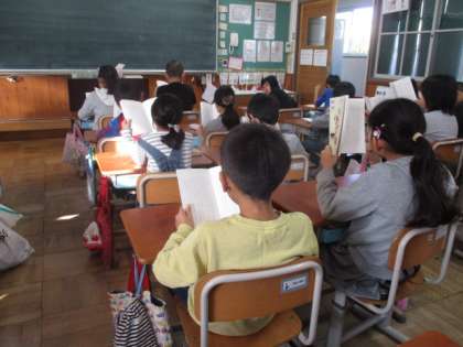 3年生は,集団読書で「フングリコングリ」「夜にくちぶえふいたなら」「マボロビッチ」の三種類をみんなで同じ時間に読書をして