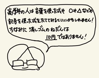 ボールペンと消しゴムのねだんは合わせて110円です。