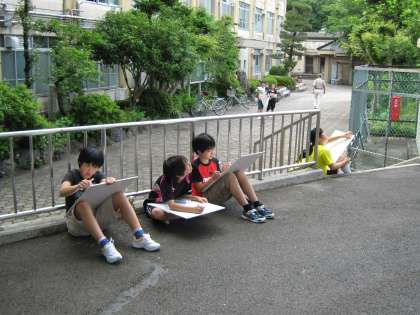 まずは,電柱をしっかり見て細かなところを意識して描いています。
