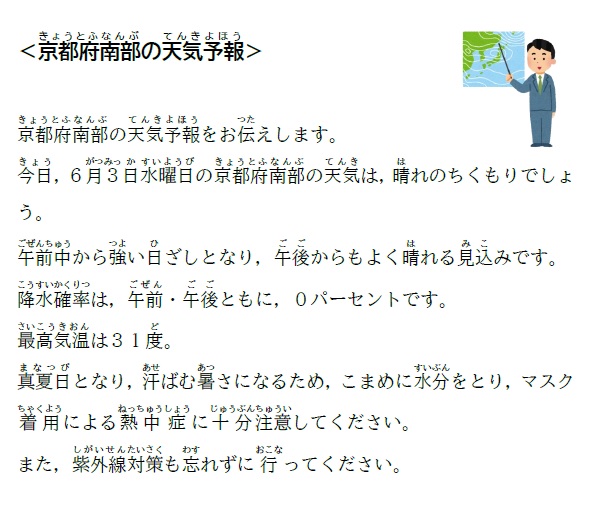 音読「京都府南部の天気予報」