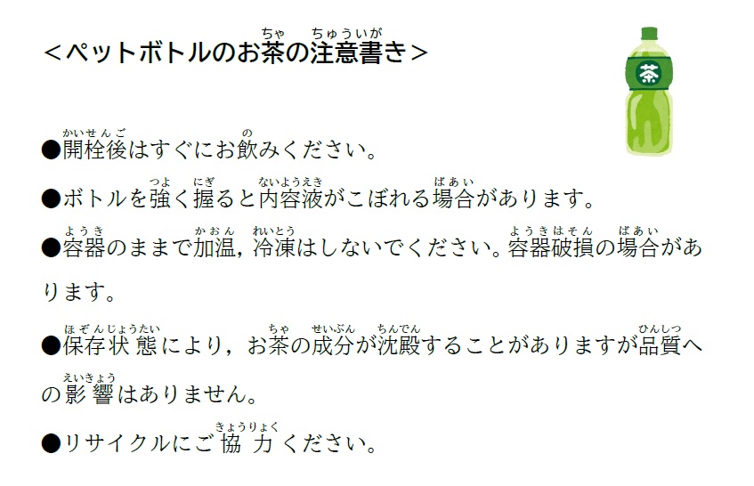 音読「ペットボトルのお茶の注意書き」