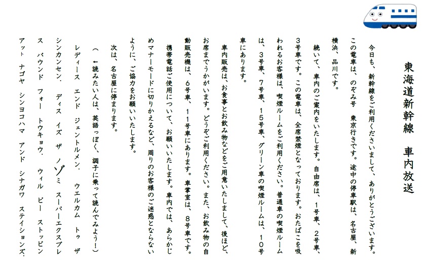音読「新幹線の車内放送」