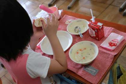 難しい食べ方の給食でしたが,みんな上手に食べることができました。
