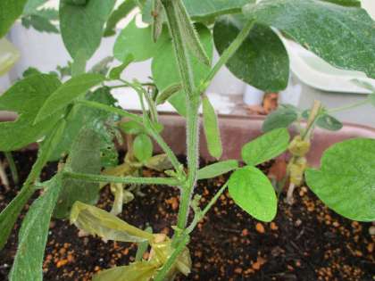 また,枝豆の苗を見てみると・・・なんと!!さやが3つほどできていました。早く中の豆が成長して収穫できるのが楽しみです!