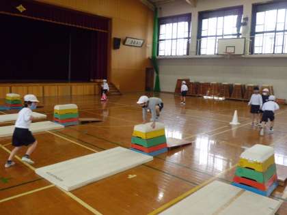 体育科で「とびばこあそび」の学習に取り組んでいます。