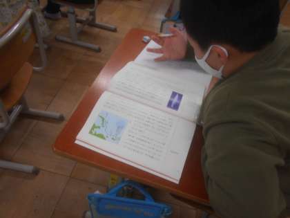 説明文を読み,文章全体の構成を捉えたり,それぞれの段落の中に隠れた「中心となる語や文」を読み取ったりする学習を終え,要約の学習に入りました。