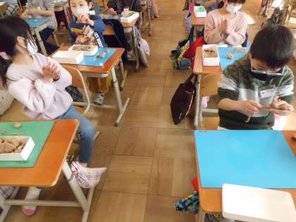 図画工作の時間では,久しぶりに粘土の学習に取り組みました。