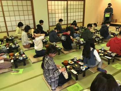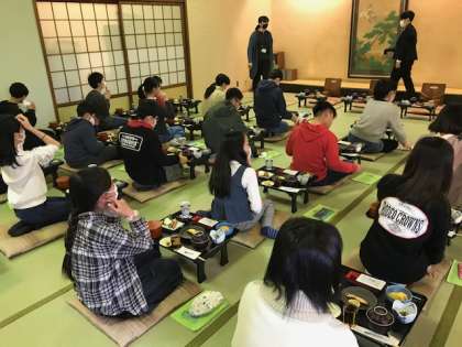 結構品数があって,一人ずつのお膳です。しっかり食べましょう。