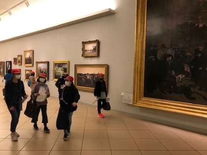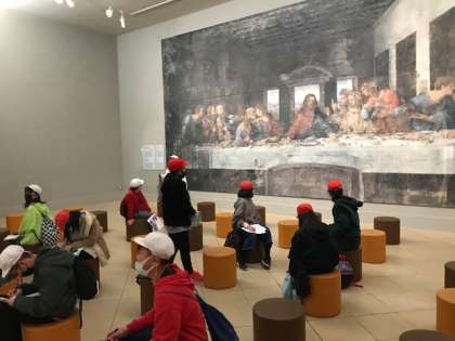 大塚国際美術館は,1階が,最上階です。ピカソの「ゲルニカ」をみんなで鑑賞した後,グループごとに,下の階に下りていきながら,絵画を鑑賞します。