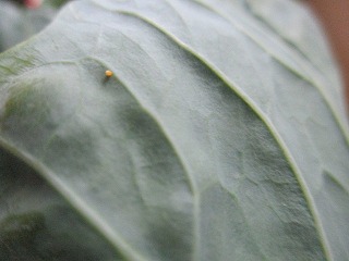 理科の学習で,キャベツの葉にモンシロチョウの卵があるか,観察しました。