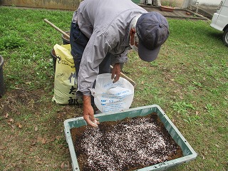 土づくりは簡単そうに見えましたが,たい肥や肥料の配合などが難しそうでした。林さんの長年の経験から分かる目分量で作業をされていました。