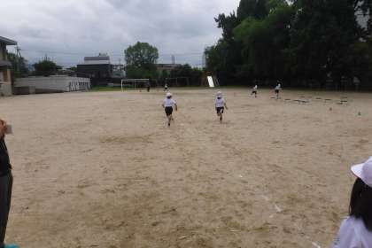 50mの直線を走ったり,けんけん,ミニハードルやミニコーンなどを使ったコースを走ったりして活動を進めています。