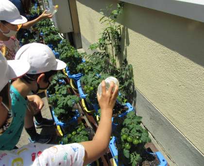 生活科で育てているミニトマトがだんだん大きくなってきています。