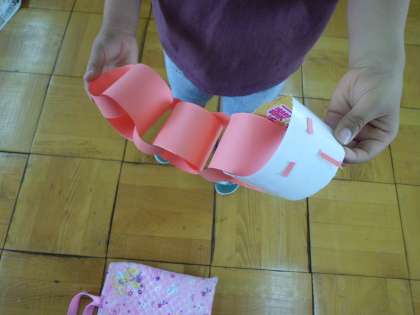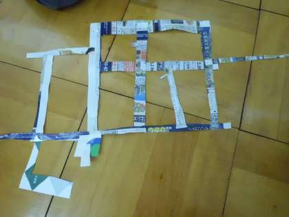 細い紙を繋いでいくと,いろいろな形を見つけて楽しんでいました。「迷路みたいになった!」「蛇になった!」などと,口々に話していました。